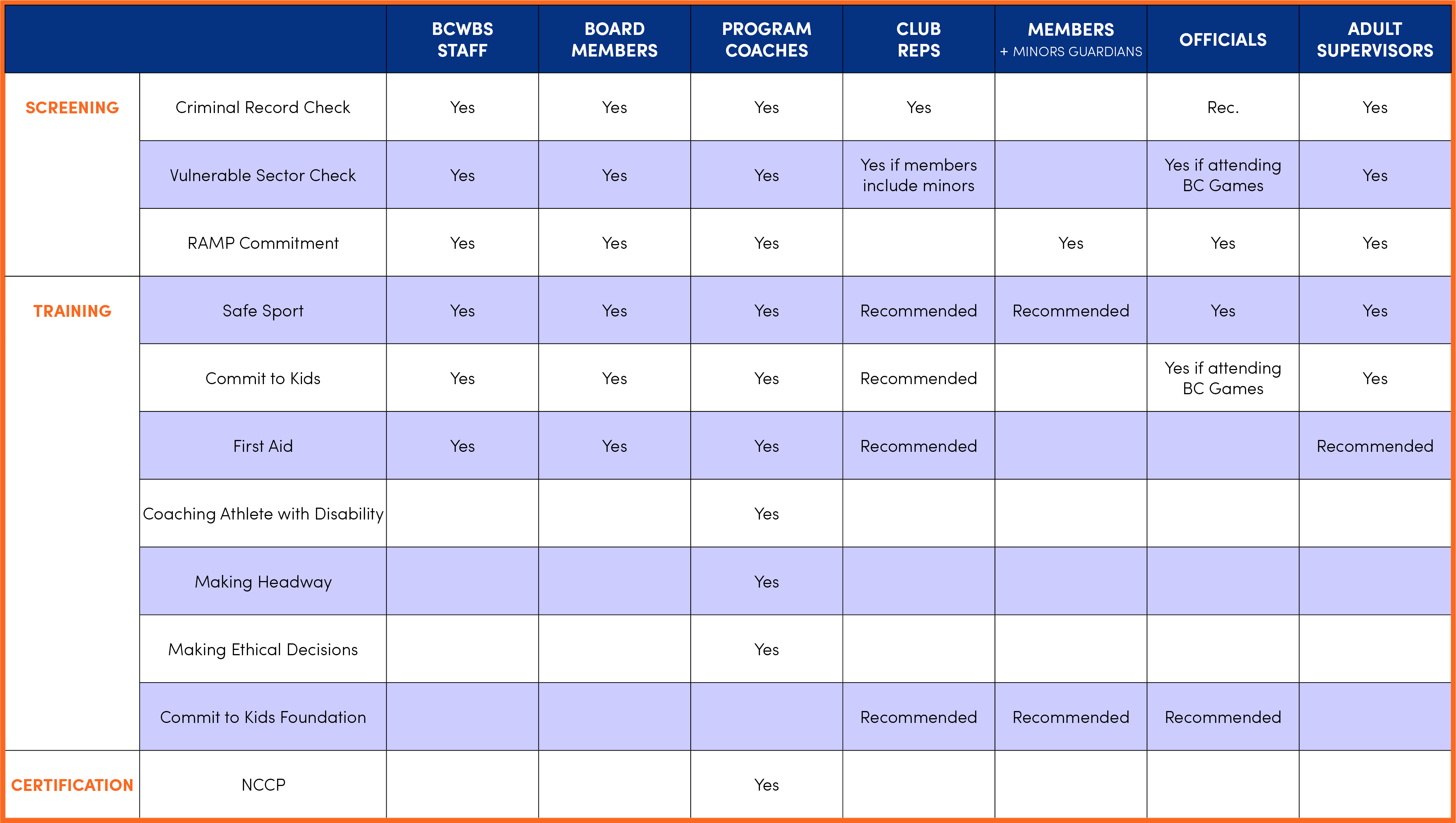 BCWBS accepts all language contained in the British Columbia Universal Code of Conduct (BC UCC). Click for a copy of the code.